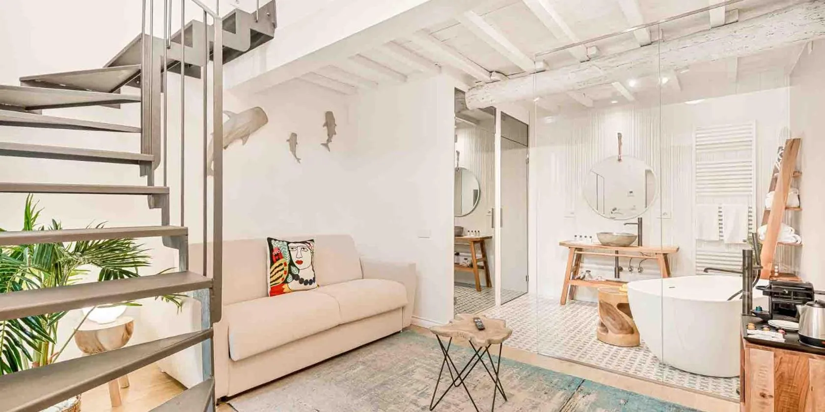 Location was excellent in a quiet street off the centre. The street has a few shops and enough places for food and coffee. Across the street you could buy fresh fruit, veg, homemade pestos and all the basics needed to make your own food.