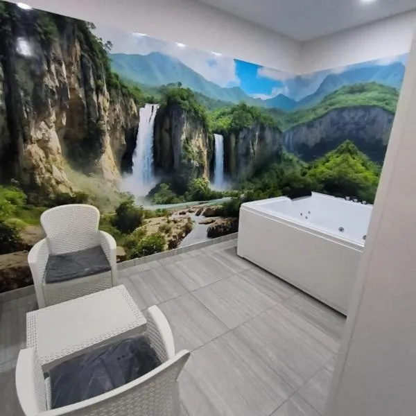 マリリアーノにあるDislocati BnB - Jacuzzi privata - Cucina - TV60" - Minimal Luxuryはナポリ中央駅から21kmで、庭を提供しています。庭の景色が望めます。ホットタブ、自転車のレンタルサービスを利用できます。館内全域での無料WiFi、24時間対応のフロントデスク、空港トランスファー、ATMを提供しています。
