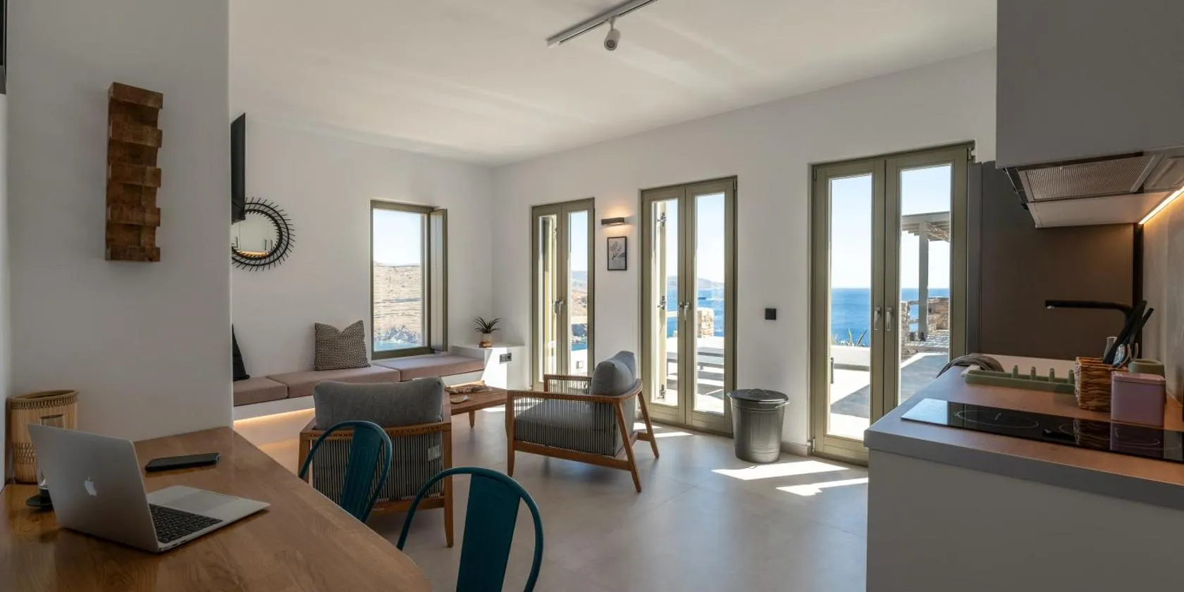 MérichasにあるΚΥΘΝΟΣ LAREROOMSはマルティナキアビーチから徒歩4分以内、エピスコピビーチから1.8km以内で、無料WiFi付きのユニット、エアコン、テラスを提供しています。海の景色を望む宿泊施設で、ポンティキアビーチから2.7kmです。