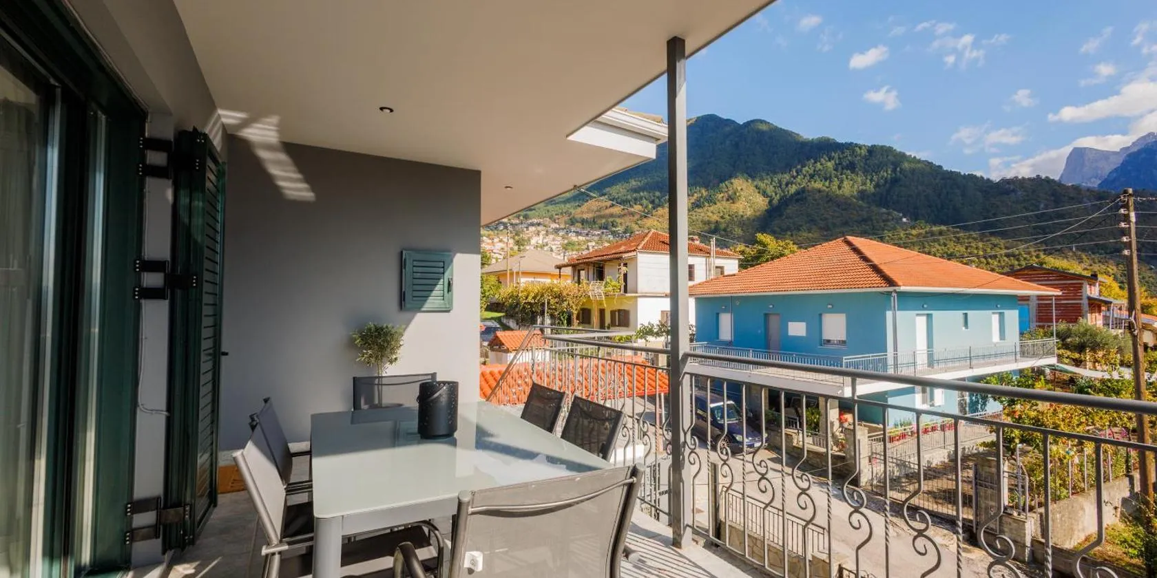 山の景色を望むRadovoliはバルコニーとコーヒーメーカー付きのユニットを提供しており、パナギア・スピリオティッサ修道院まで約6.3kmです。アオース川から27kmで、無料WiFiとATMを提供しています。 市街の景色を望むテラス、ベッドルーム1室、リビングルーム、薄型テレビ、設備の整ったキッチン(冷蔵庫、オーブン付)、バスルーム(ビデ付)1室が備わるアパートメントです。