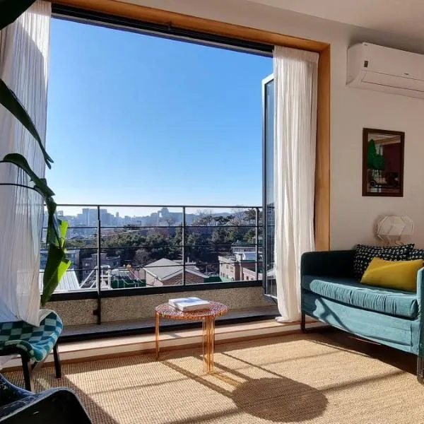 Die Unterkunft Sky Cozy House mit Gartenblick in Seoul bietet Übernachtungsmöglichkeiten mit einem Garten, einer Gemeinschaftslounge, einer Terrasse und einer Bar.