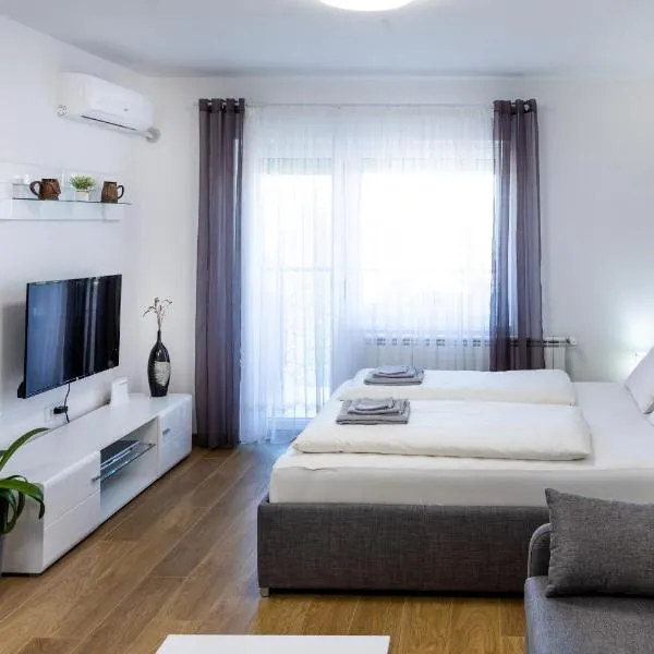 スボティツァにあるApartments Piaはテラスを提供しており、セゲドの奉納教会まで46km以内、Szeged Train Stationまで43km以内です。館内全域での無料WiFi、敷地内の専用駐車場を提供しています。 すべてのユニットにはエアコン、設備の整ったキッチン、薄型テレビ、専用バスルーム(シャワー、無料バスアメニティ、ヘアドライヤー付)が備わります。