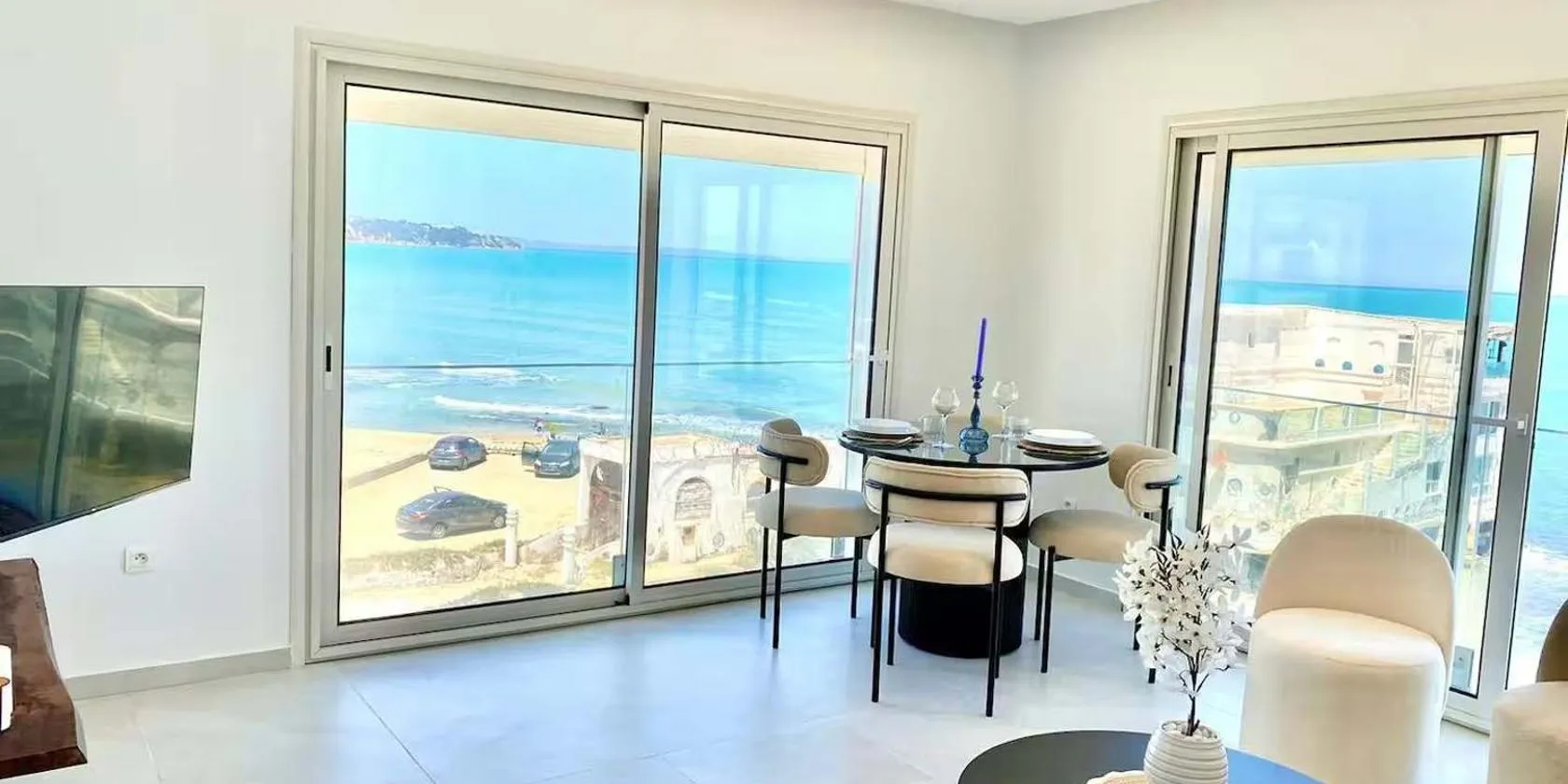 チュニスのSidi DaoudにあるSchöne, ruhige neuwertige 127qm Ferienwohnungはバルコニーを提供しています。このアパートメントでは、無料専用駐車場、24時間対応のフロント、無料WiFiを提供しています。