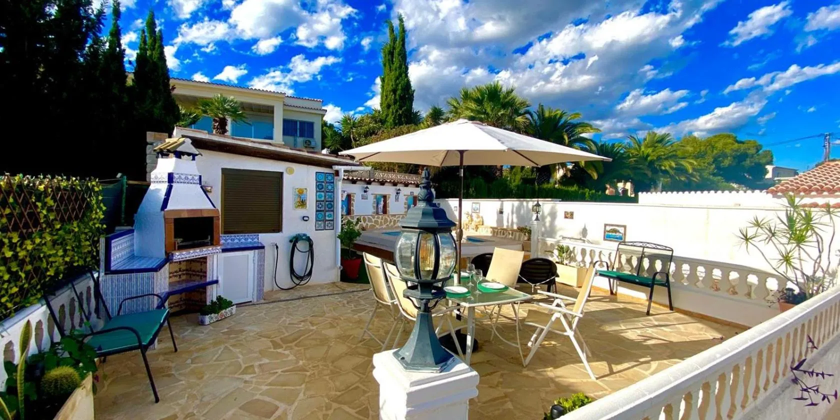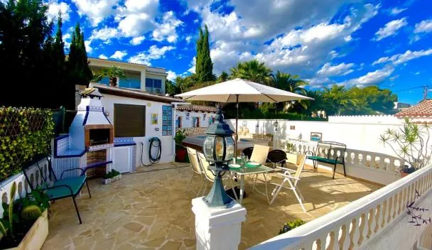 庭の景色を望むCalpe chalet privado 7 min de la playa piscina wifi parking aire barbacoa gruposは屋外プール、専用ビーチエリア、テラスを提供する宿泊施設で、アレナル・ボルビーチまで約徒歩17分です。この別荘では、専用プール、庭、バーベキュー施設、無料WiFi、無料専用駐車場を提供しています。...