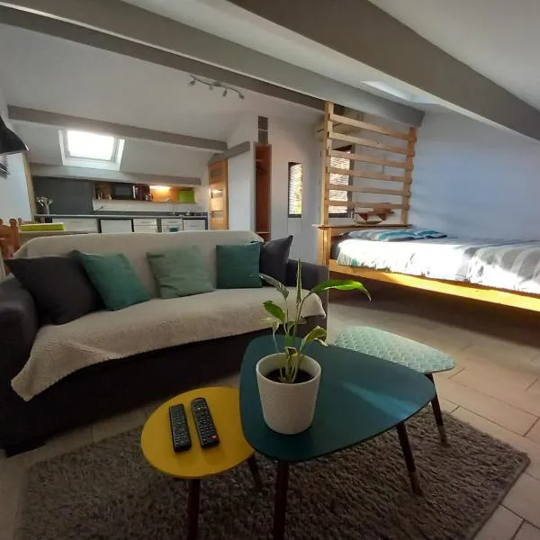 市街の景色を望むDuplex sous les toitsはリエにある宿泊施設で、無料WiFiを提供しています。このアパートメントからゴルフ・デュ・リュベロンまで42kmです。 ベッドルーム2室、リビングルーム、設備の整ったキッチン(冷蔵庫、コーヒーメーカー付)、バスルーム(シャワー、ヘアドライヤー付)1室が備わるアパートメントです。このアパートメントにはタオルとベッドリネンを用意しています。