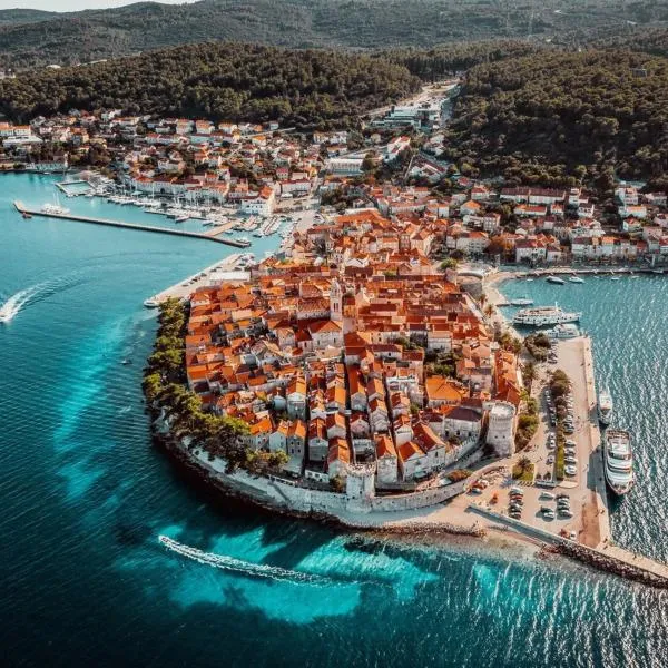 バニェ・ビーチから徒歩1分のCastello rezidence Korcula 2はコルチュラにある宿泊施設で、テラス、無料WiFi、24時間対応のフロントを提供しています。市街の景色を望む4つ星のアパートメントで、コルチュラ・バスステーションまで徒歩数分です。
