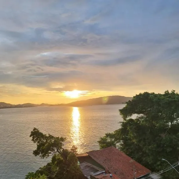 A 2 km da Praia do Gonzaguinha a São Vicente, Kitnet Vista Mar em São Vicente - Charme e Conforto prevede un alloggio con vista sul mare, WiFi gratuito e parcheggio privato gratuito.