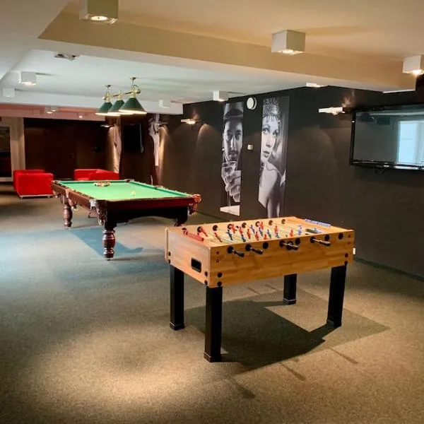 ウッチ・ファブリチナから21kmのFarma BiiはBrzezinyにある宿泊施設で、無料レンタル自転車、無料専用駐車場、庭、テラスを提供しています。レストラン、バー、サウナも提供しています。このホテルは館内全域での無料WiFi、屋内プール、ルームサービスを提供しています。 Farma Biiのお部屋にはワードローブが備わります。