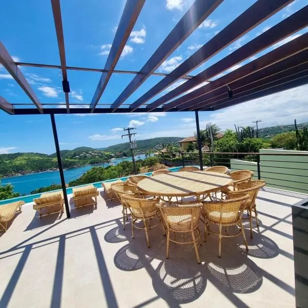Casa Lila - Casa com Espetacular View ligger i Búzios og tilbyder indkvartering med gratis wi-fi, swimmingpool, en have, en terrasse og udsigt til byen.