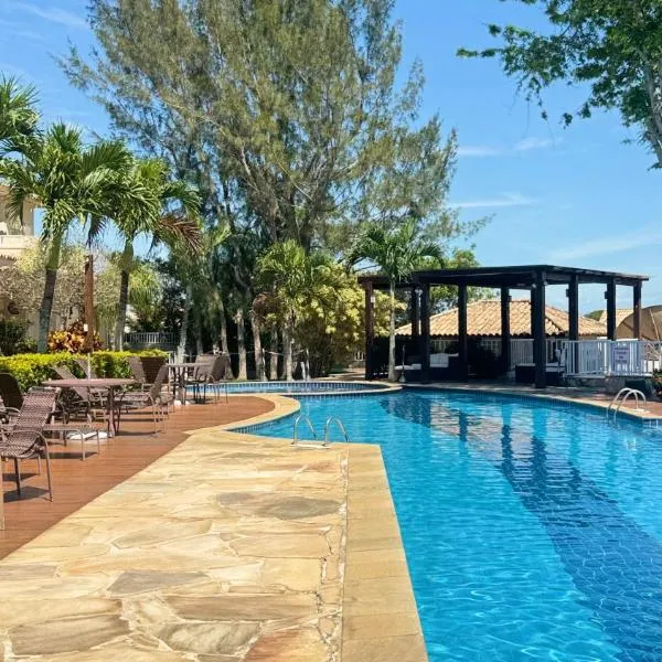 Casa com 3 quartos em condomínio a 500m da Praia de Geribá ligger ca. 19 minutters gang fra Geriba Lagoon og har en udendørs swimmingpool, balkon og pooludsigt.