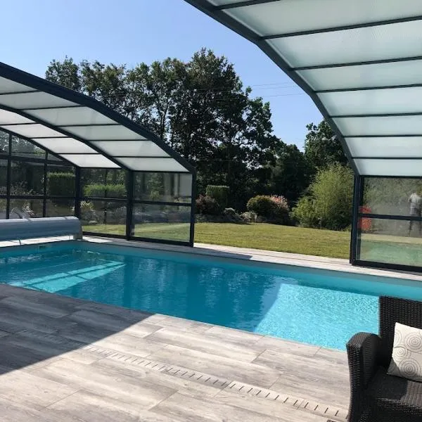 Situated in Bourgneuf-en-Retz, maison piscine clos, wifi, 2 chambres près de la mer features accommodation with a private pool, a patio and pool views.