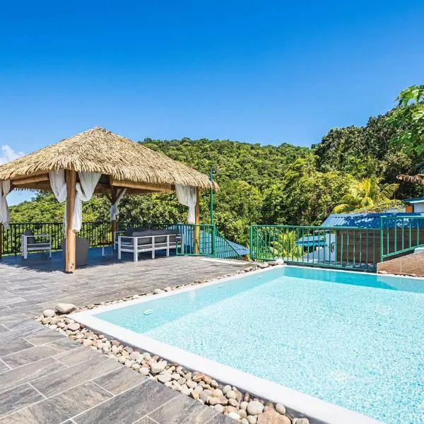 サント・ローズにあるDomaine Les hauts de Sofaia - Évasion Créole - Vue Mer Spectaculaireは、市街の景色を望むユニット(無料WiFi利用可)、屋外プール、庭、テラスを提供しています。専用プールと無料専用駐車場を提供しています。