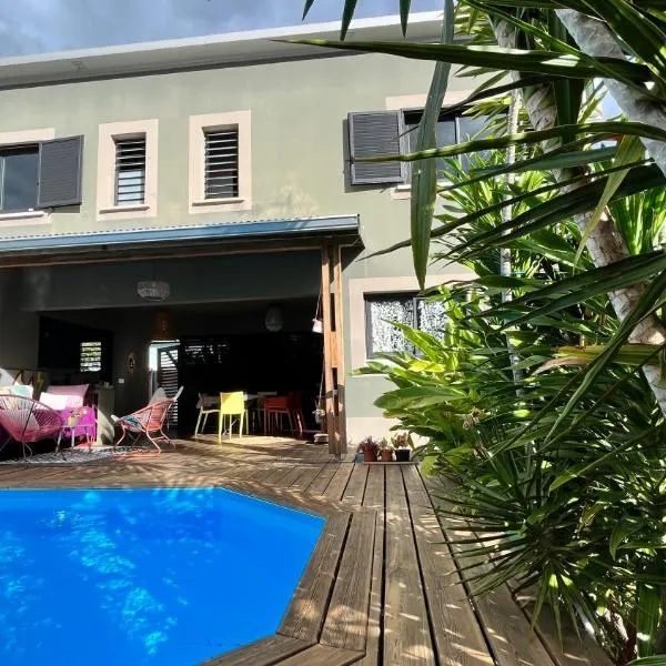Couleurs K'fé býður upp á garðútsýni og gistirými með verönd, í um 2,9 km fjarlægð frá Saga du Rhum. Gistirýmið er með sundlaugarútsýni, svalir og sundlaug.