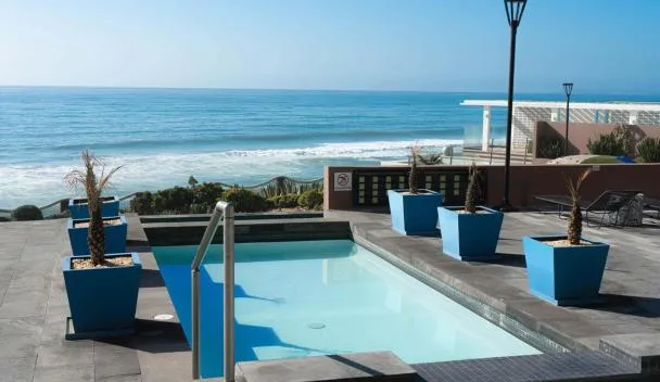 ティファナにあるOceanfront Condominiums with Private Beach Accessはプール、庭、専用ビーチエリア、無料WiFi付きのユニットを提供しており、プールの景色が望めます。敷地内に専用駐車場があります。