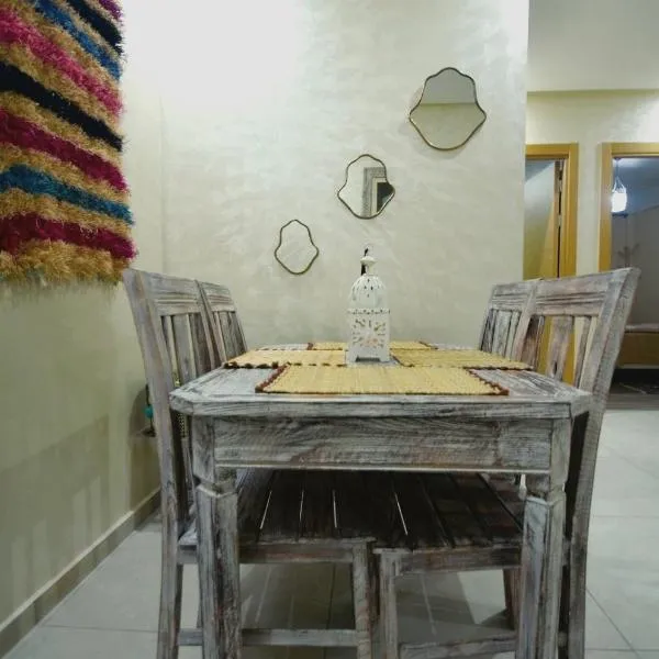 庭の景色を望むLuxury apartment in Essaouiraはテラスとバルコニーを提供する宿泊施設で、ゴルフ・ドゥ・モガドールまで約4.9kmです。プラージュ・デッサウィラから徒歩3分の宿泊施設で、庭と無料専用駐車場を提供しています。 ベッドルーム1室、衛星薄型テレビ、ダイニングエリア、キッチン(冷蔵庫付)、リビングルームが備わるアパートメントです。