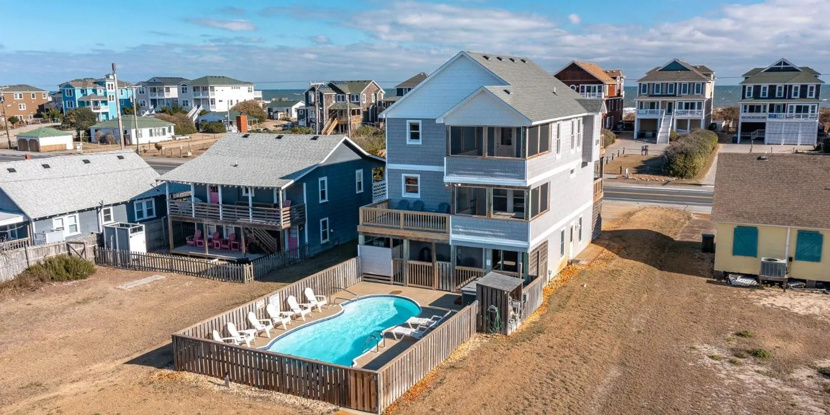 Located next to the Nags Head Pier, this oceanfront property features an outdoor pool and direct beach access.