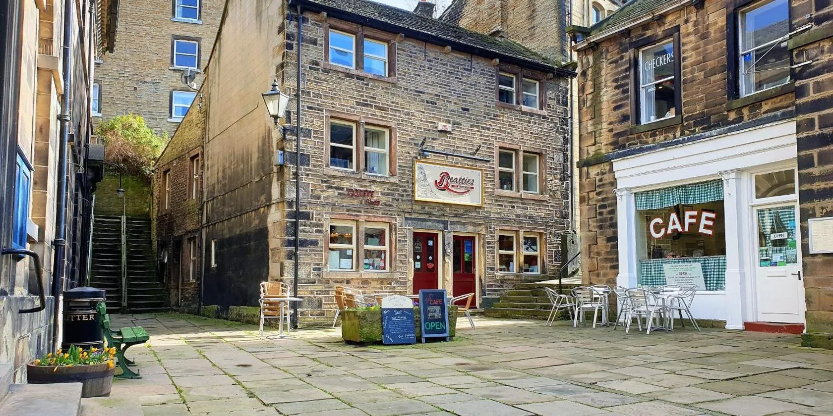 The historic Old Bridge Inn & Coffee House is located in the centre of the small market town of Holmfirth beside the River Holme.