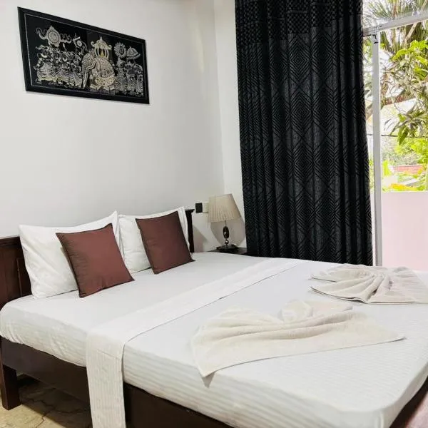 ワウワビーチから徒歩数分のRatnakaraはDondra Eastにある宿泊施設で、庭、無料専用駐車場、共用ラウンジ、テラスを提供しています。共用キッチン、レストラン、屋外プールも提供しています。禁煙の宿泊施設で、フマナヤ・ブロウホールから20kmの場所にあります。 Ratnakaraのお部屋にはワードローブ、ベッドリネン、庭の景色を望むパティオが備わります。