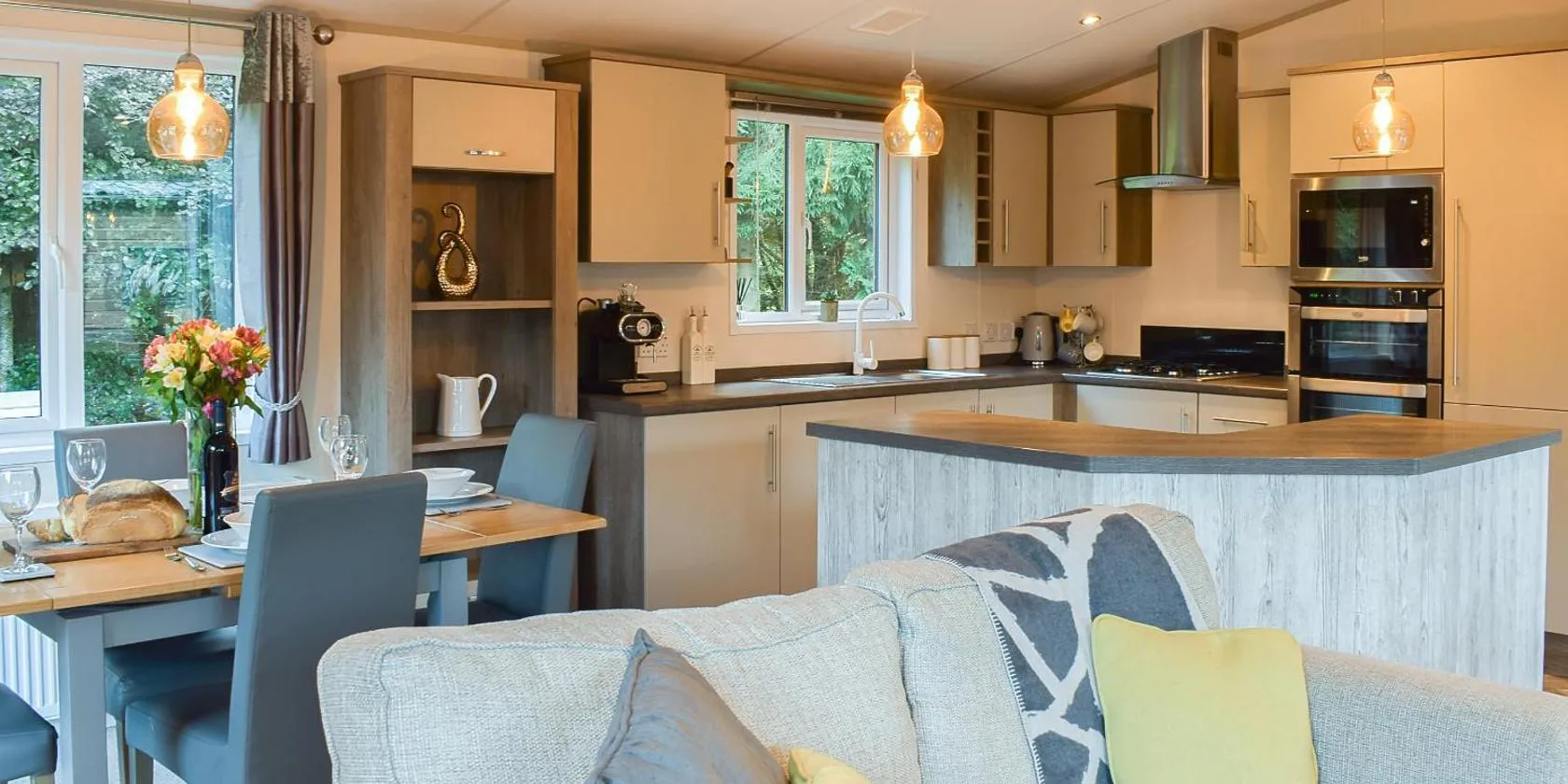 川の景色を望むOtter Lodge Auchterarderはバルコニーとポット付きのユニットを提供しており、メンティース湖まで約49kmです。スクーン宮殿から23kmの宿泊施設で、庭と無料専用駐車場を提供しています。 山の景色を望むテラス、ベッドルーム2室、リビングルーム、薄型テレビ、設備の整ったキッチン(冷蔵庫、食器洗い機付)、バスルーム(シャワー付)2室が備わるロッジです。