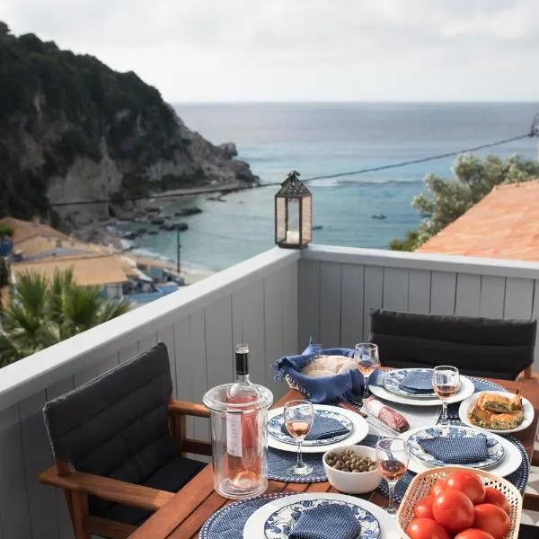 Aghioti se nachází v destinaci Ayios Nikitas v oblasti Iónské ostrovy a má balkon a výhled na moře. Ubytování poskytuje zahradu a neplacené soukromé parkoviště.