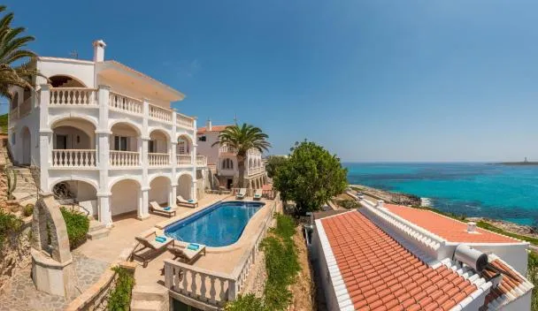 BinisafuaにあるVilla Binimigiはカロ・ブランビーチから徒歩5分、マオン港から12kmで、エアコンを提供しています。このヴィラでは、専用プール、庭、バーベキュー施設、無料WiFi、無料専用駐車場を提供しています。 ベッドルーム4室、バスルーム4室、ベッドリネン、タオル、テレビ、設備の整ったキッチン、海の景色を望むテラスが備わるヴィラです。