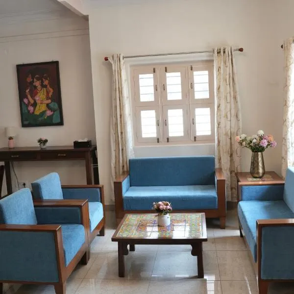 Villa Vinaya- Comfort, Calm & Charm in Mysore se nachází v destinaci Maisúr a nabízí zahradu, sdílený lounge a sdílenou kuchyň. Zahrady Brindavan se nachází jen 15 km odtud.