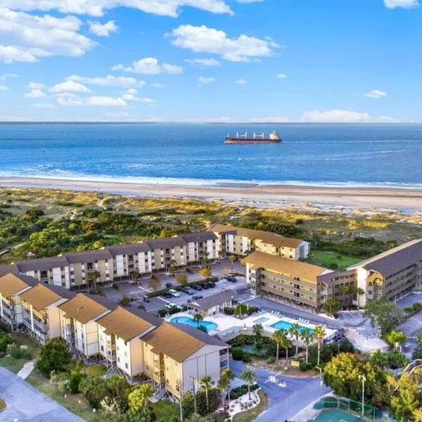 BEACHSIDE CONDO-WATER AND POOL VIEW Top Floor se nachází v destinaci Tybee Island a nabízí venkovní bazén, soukromou pláž, terasu a ubytování s bezplatným Wi-Fi a výhledem na moře.