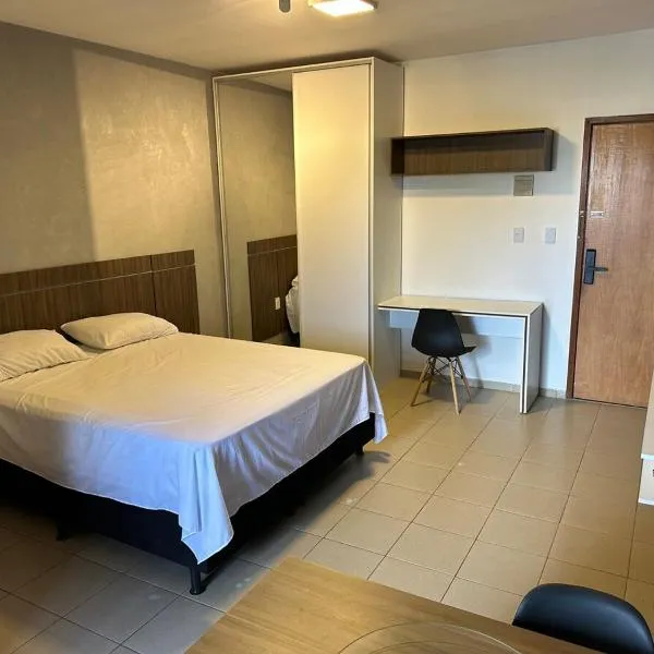 Quarto Mobiliado no Hotel Go Inn Taguatinga com Wi-Fi, Ar Condicionado e Estacionamento Grátis se nachází v destinaci Brasília a poskytuje ubytování s venkovním bazénem, neplaceným soukromým...