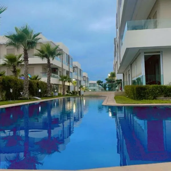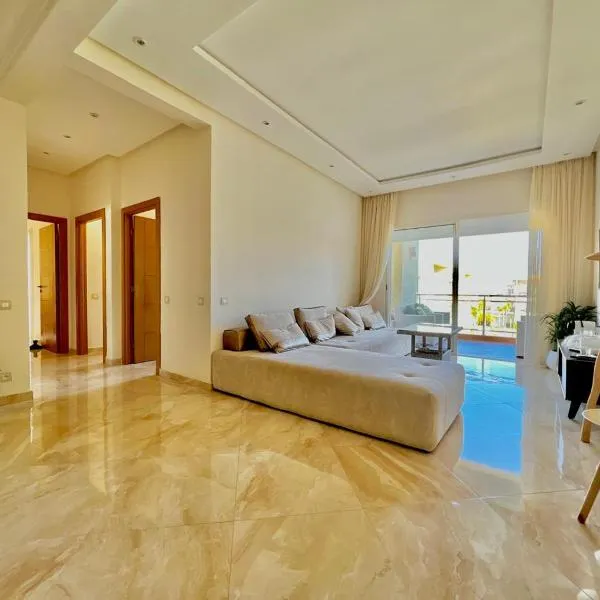Superbe appartement en résidence avec piscine se může pochlubit výhledem do zahrady a poskytuje ubytování s soukromou pláží a balkonem. Nákupní centrum Morocco Mall se nachází přibližně 27 km odtud.