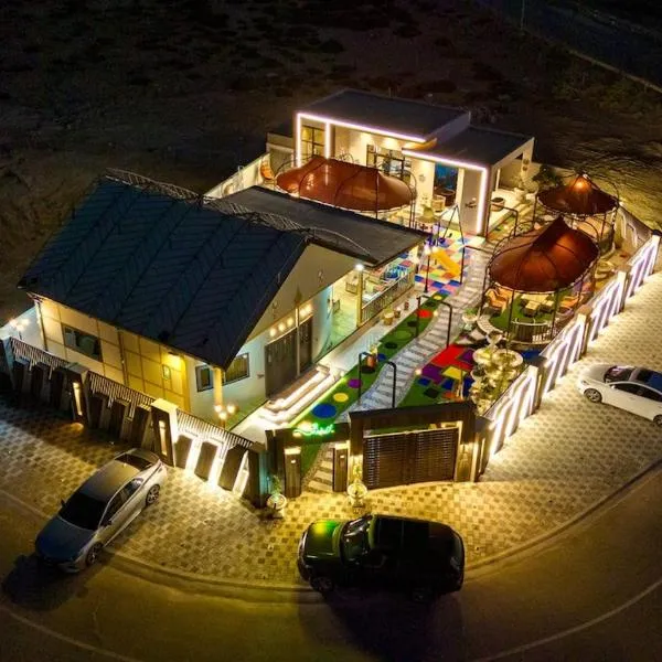 Alshahad chalet se nachází v destinaci Bārsit a nabízí zahradu, celoročně otevřený venkovní bazén a výhled na bazén. Toto ubytování nabízí terasu, neplacené soukromé parkoviště a bezplatné Wi-Fi.