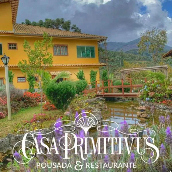 Pedra MeninaにあるPousada Casa Primitivusは庭を提供しています。3つ星のホテルで、山の景色を望むユニットとホットタブを提供しています。ブラジル料理のレストランと無料専用駐車場を提供しています。 Pousada Casa...