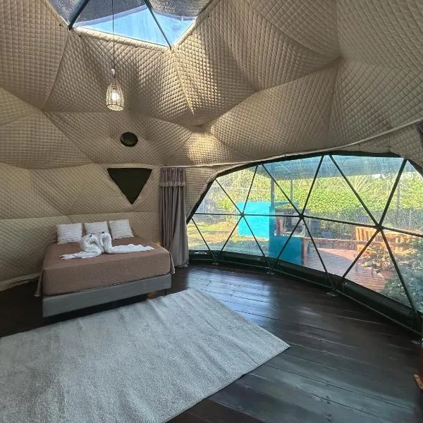 Hotel Arenal Glamping se nachází v destinaci Fortuna a poskytuje venkovní bazén, fitness centrum, zahradu, sdílený lounge, terasu a výhled na bazén.
