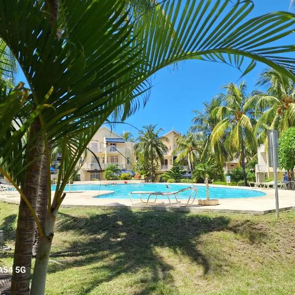 フリック・アン・フラックにあるRs villa 2 share apartment 100 mts to the beach and bus stopはフリック・アン・フラック・ビーチから徒歩2分、タマリナ・ゴルフコースから10kmで、エアコン完備のユニット(無料WiFi利用可)と庭(屋外プール付)を提供しています。敷地内の専用駐車場を提供しています。