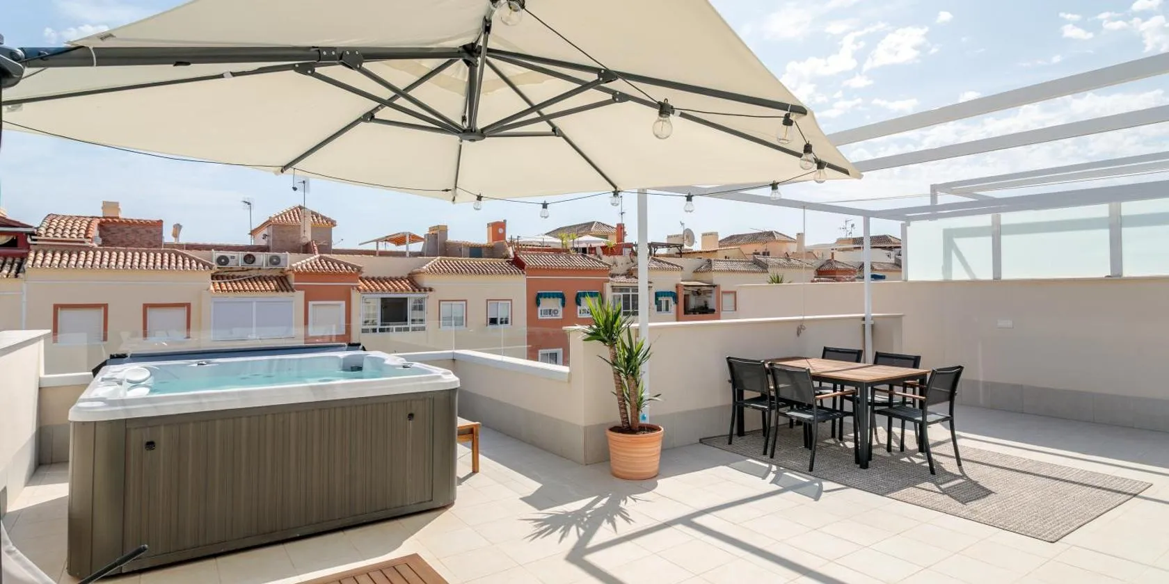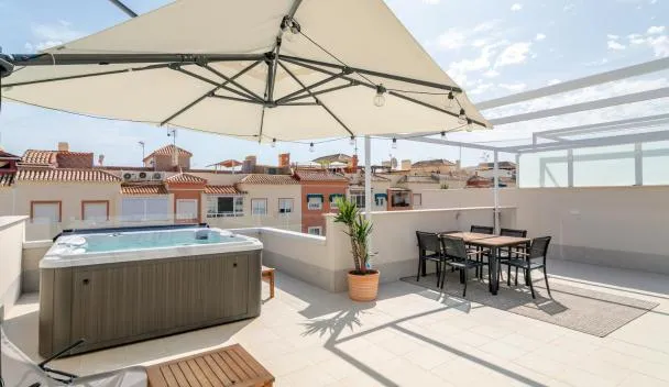 Rooftop Terrace, Private Jacuzzi, Heated Pool poskytuje bezplatné Wi-Fi a terasu. Golfové hřiště Las Colinas se nachází 8,7 km odtud a Villamartin Plaza 7,7 km.