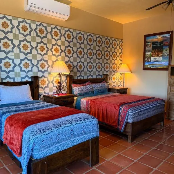 Posada del Cortes nabízí Wi-Fi ve všech prostorách, kávu na pokoji a parkování zdarma. Nachází se 300 metrů od nábřeží Adolfo López Mateos a 200 metrů od hlavního náměstí Loreto.